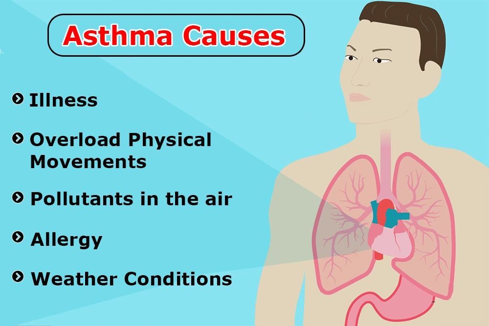 Asthma is a disease in the airways to the lungs. In this disease, the airways get swell & narrow and produce extra mucus. The effects of this are difficulty in breathing, coughing, wheezing (sharp sound while breathing) and shortness of breath.