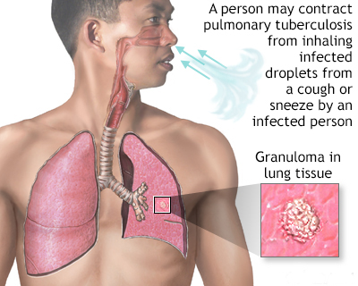 Pulmonary TB is caused by the bacterium Mycobacterium tuberculosis (M tuberculosis). TB is contagious. This means the bacteria are easily spread from an infected person to someone else. You can get TB by breathing in air droplets from a cough or sneeze of an infected person. The resulting lung infection is called primary TB.